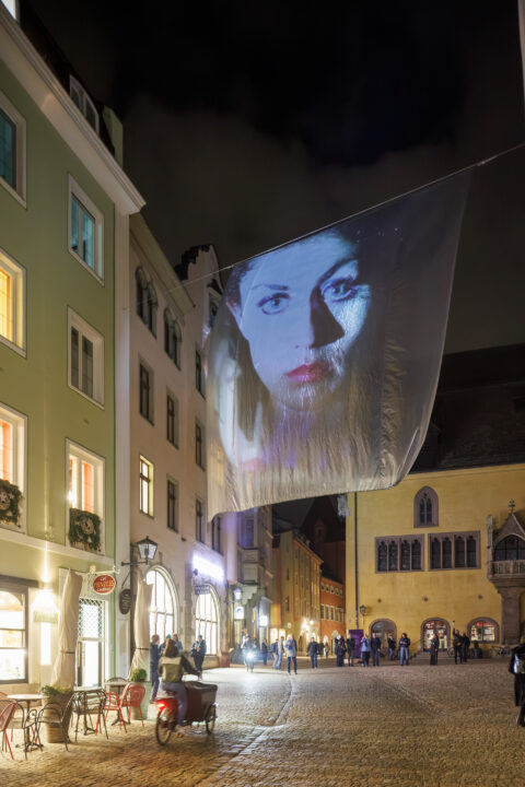 Ein weiterer Fokus liegt auf erneuerbaren Energien und CO2-neutral produziertem Strom, denn bei uns kommt nur 100 Prozent Ökostrom von der REWAG zum Einsatz. Und auch die Öffnungszeiten und Leuchtdauer der Lichtkunstwerke werden bewusst geplant: Durch die Attraktivierung des öffentlichen Raums kann andernorts Energie eingespart werden, indem beispielsweise die Besucherinnen und Besucher in der Regensburger Altstadt unterwegs sind, anstatt zuhause elektrische Geräte zu nutzen. Auch das Abschalten nicht sicherheitsrelevanter öffentlicher Beleuchtung rund um die Lichtkunstwerke trägt zum Einsparen bei. Während des Festivals 2024 war daher keine Erhöhung der Energie-Verbrauchskurve festzustellen.